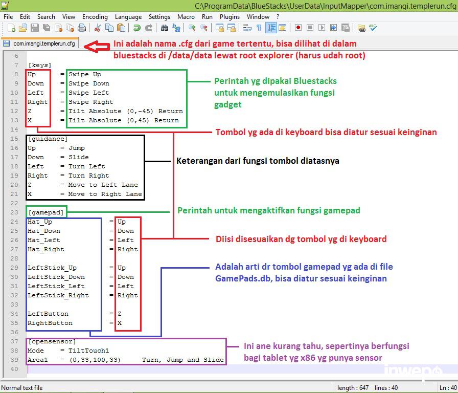 File .cfg. diperlukan biasanya untuk permainan multitouch (RPG, dll) atau permainan yang memerlukan miring-miring (goyangkan layar) agar mudah mainnya. Sebagai contoh untuk penjelasan .cfg screenshot dari game Temple Run 2.