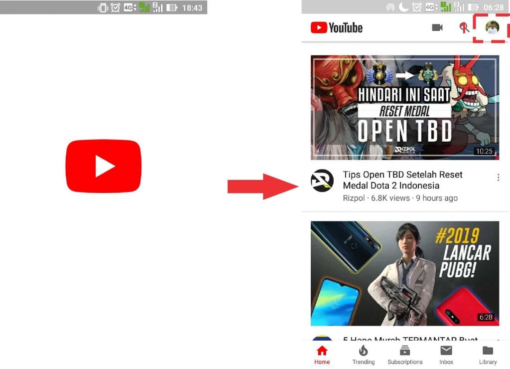 1. Buka aplikasi Youtube hingga muncul ke menu utama.