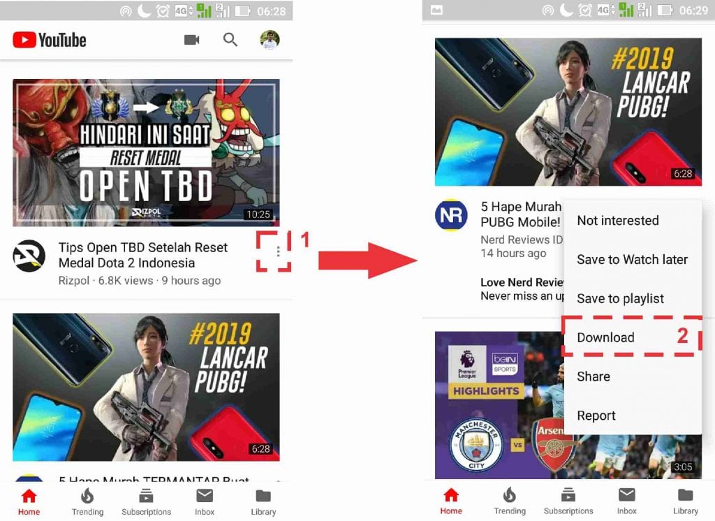 2. Kemudian pilih tombol di sebelah kanan judul video, setelah itu pilih download.