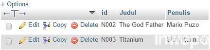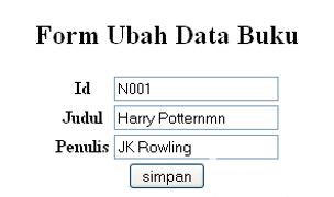 15. Kemudian jika ingin mengubah data record ketika ada kesalahan saat meng-input data, akan muncul form seperti ini. Sama halnya dengan nama file yang telah dibuat tadi yaitu editbuku_view.php.