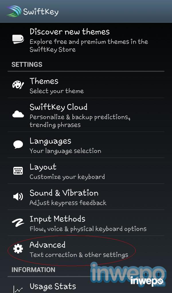 1. Masuk ke Setelan > Bahasa & masukan > Swiftkey keyboard > Advanced