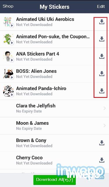 Jika terdapat stiker asing seperti gambar di bawah ini berarti kamu berhasil masuk ke sticker shop negara lain. Pilih salah satu stiker yang ingin kamu download.