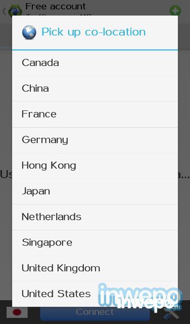 3. Pilih negara VPN yang terdapat stiker line gratis, misal jepang.