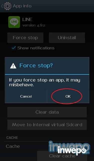 caranya: masuk ke Settings – Apps – LINE – Force stop.