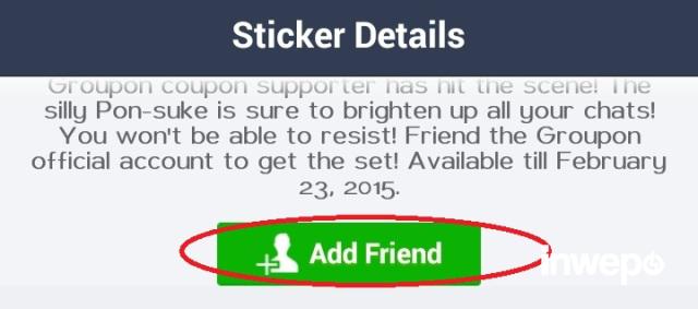 Kamu dapat download stiker yang terdapat diskripsi “Add the friend, get this free!”.