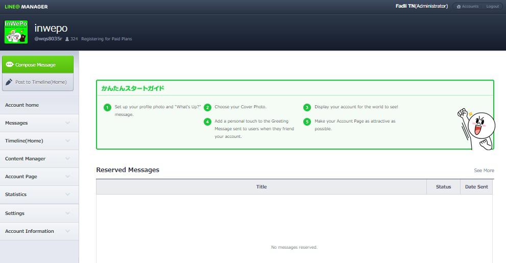 Setting admin line@ melalui website: https://admin-official.line.me