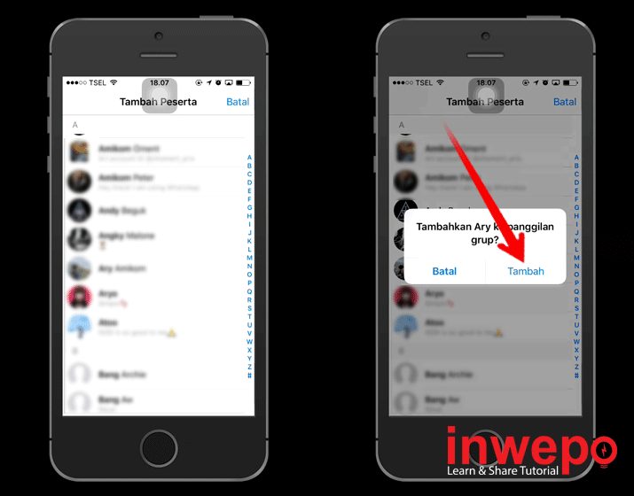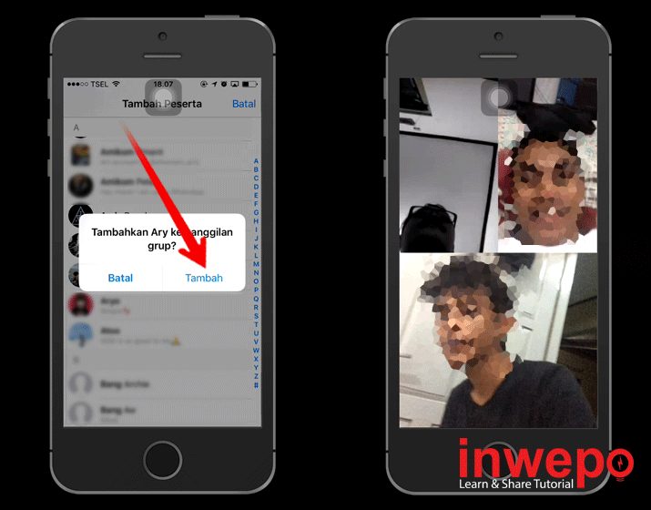 4. Cari teman yang ingin kamu tambahkan ke grup video call tersebut – tap Tambah.