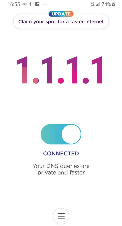 1.1.1.1 merupakan aplikasi VPN yang paling simple dan mudah digunakan. Selain itu ringan dan ukuran aplikasi ini kecil. Didukung dengan GUI yang mudah dipahami. Kamu cukup mengaktifkan tombol Disconnect menjadi Connect sudah bisa membuka atau mengakses aplikasi atau situs yang di blokir oleh operator/ISP/pemerintah.