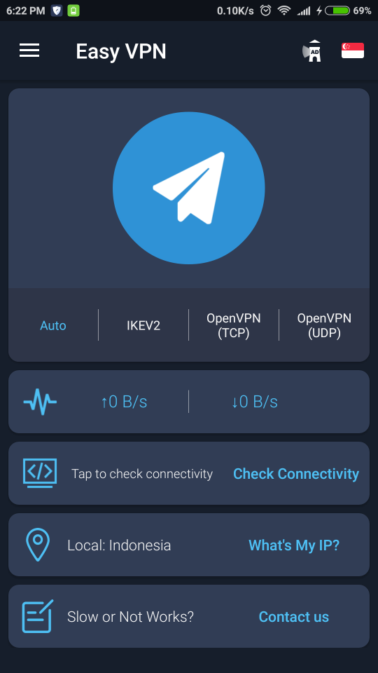 Aplikasi Easy VPN akan menyembunyikan IP kamu yang sebenarnya sehingga kamu bisa mengunjungi situs yang diblokir secara anonim dan terlindungi. Dengan bandwidth yang tak terbatas dan tanpa batasan kecepatan juga dengan interface yang mudah dan user friendly. Easy VPN hanya berukuran 24MB, cukup kecil ukurannya jika dilihat dari banyaknya fitur di aplikasi Easy VPN.